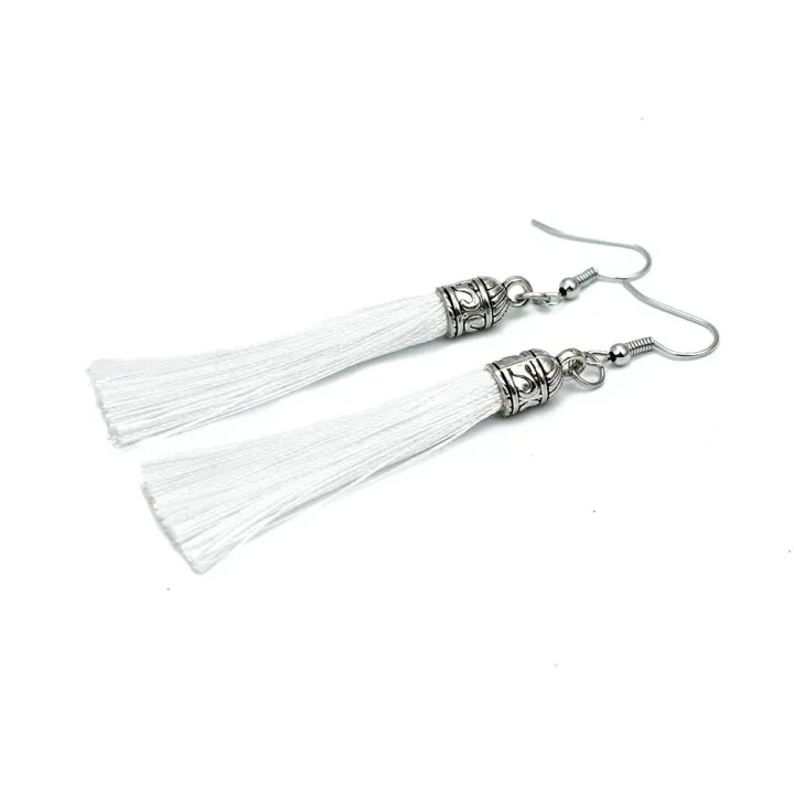 Sumérgete en un mundo de estilo étnico y bohemio con nuestros pendientes étnicos vintage de tela de seda, disponibles en una variada gama de colores. Este encantador juego de aretes evoca una sensación de encanto decorativo y elegancia despreocupada.