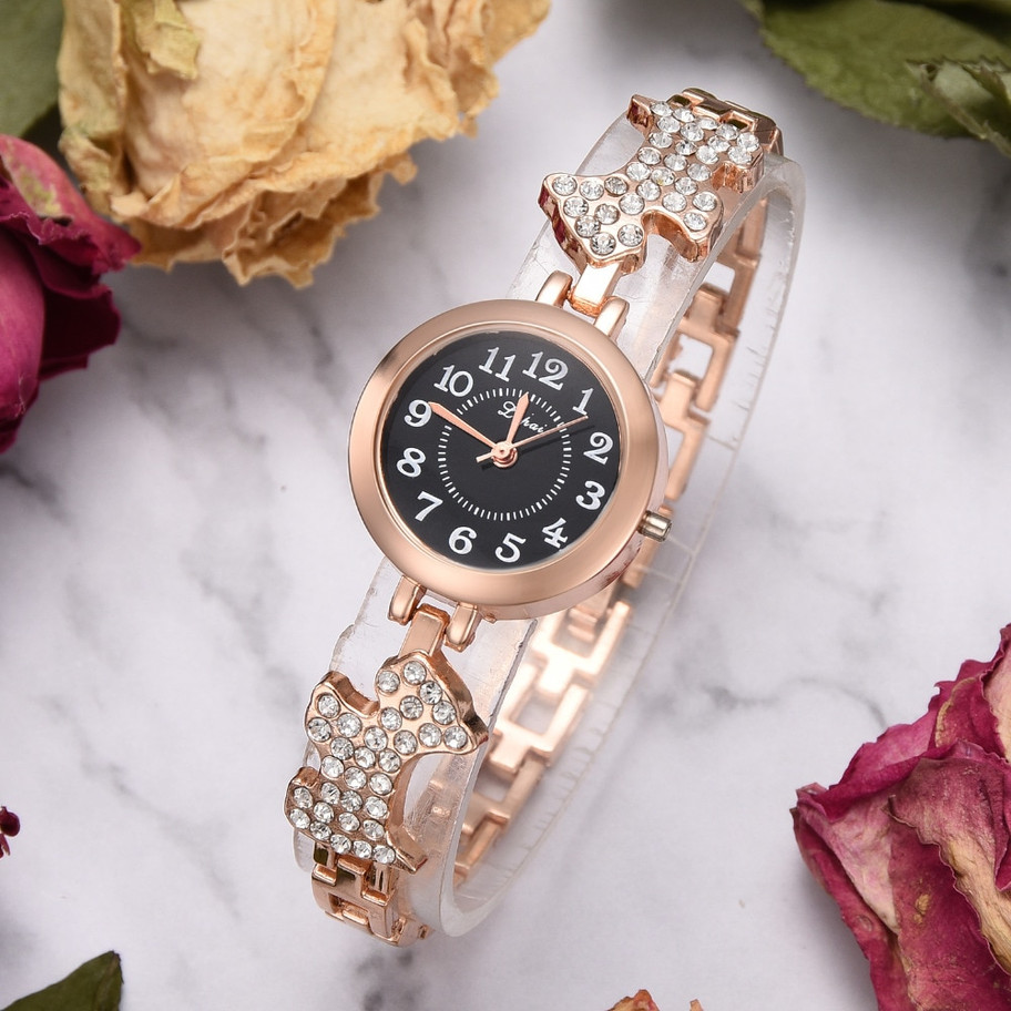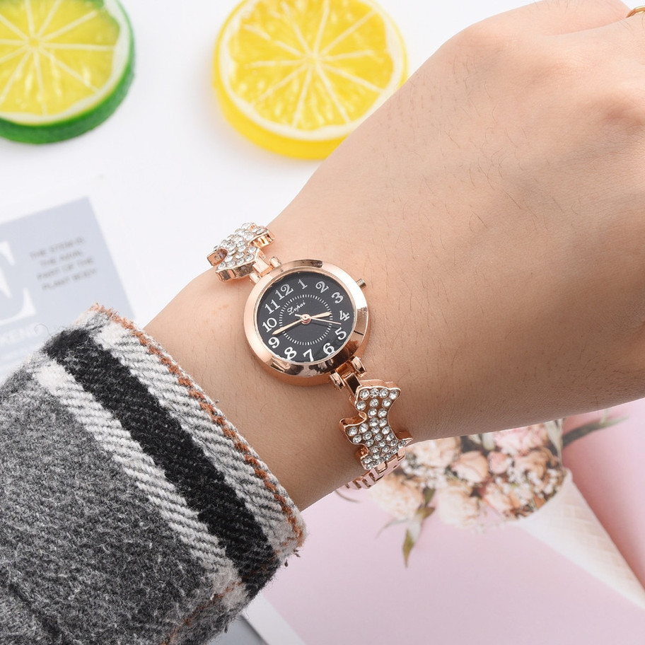 Reloj brazalete perros cristales zirconia rosa dorado